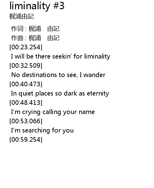 | [00:24.968] | I will be there seekin' for liminality |