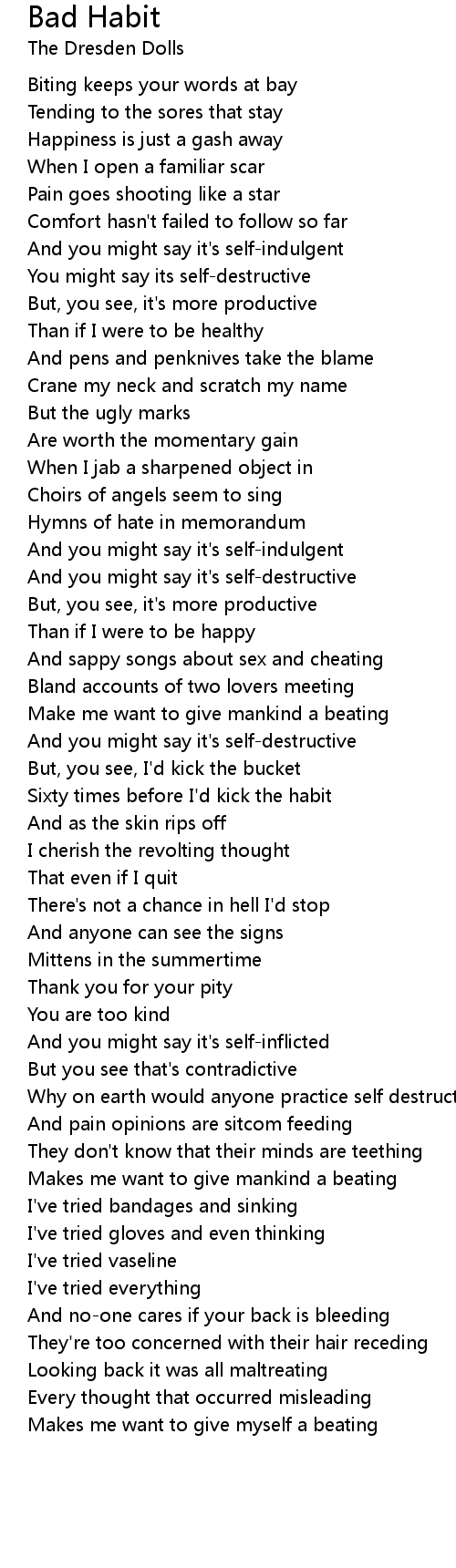 Sixty times before I'd kick the habit |