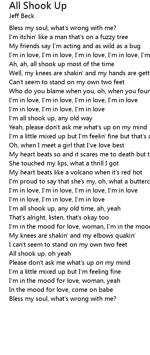 I'm in love, I'm in love, I'm in love, I'm in love, I'm all shook up |