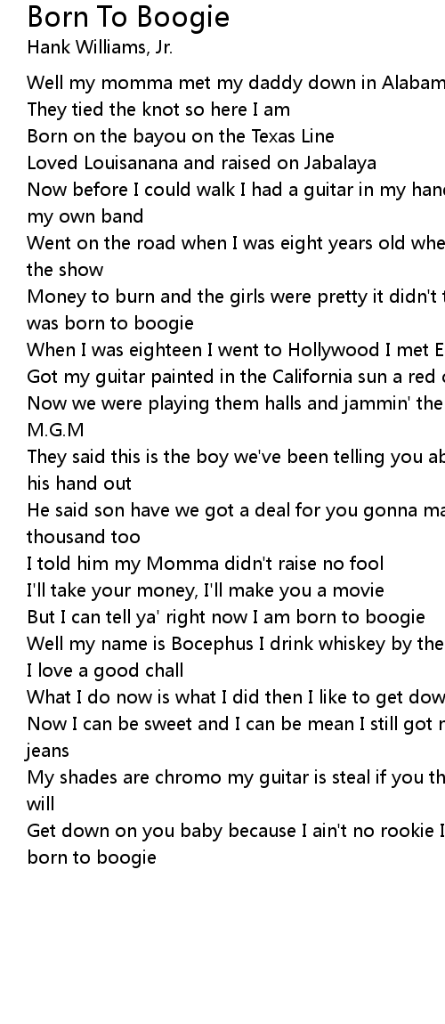 Money to burn and the girls were pretty it didn't take me long to learn that I was born to boogie |