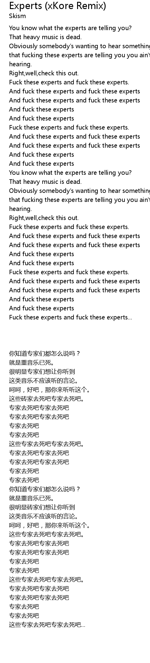 that fucking these experts are telling you you ain't supposed to be hearing. |