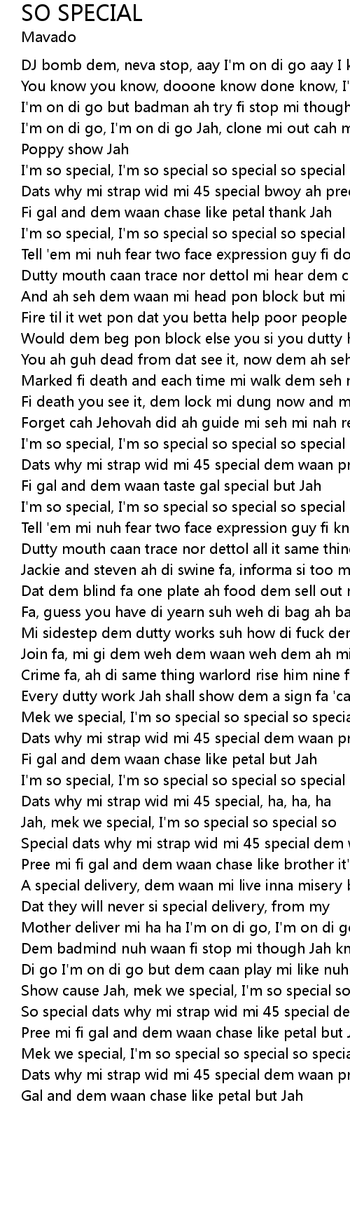 Jah, mek we special, I'm so special so special so |