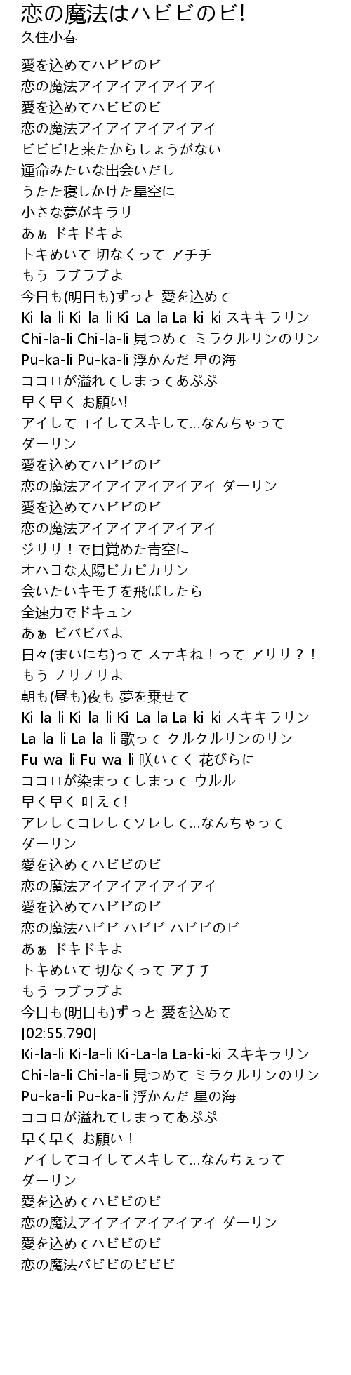 | [02:35.420] | 恋の魔法ハビビ ハビビ ハビビのビ |