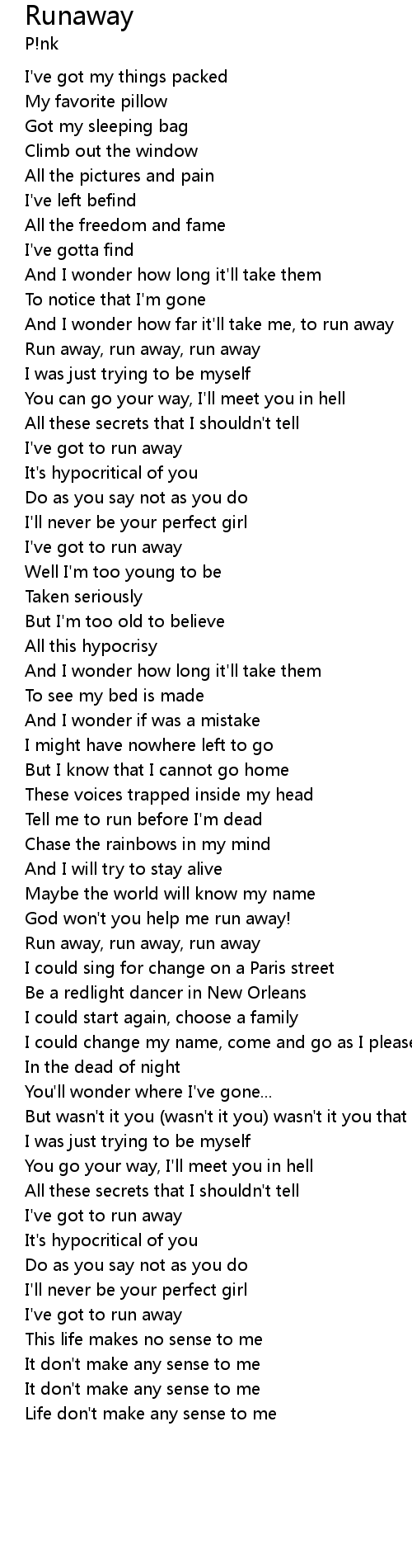 God won't you help me run away! |