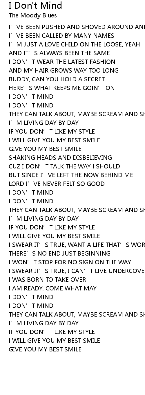 | [00:24.94] | AND MY HAIR GROWS WAY TOO LONG |