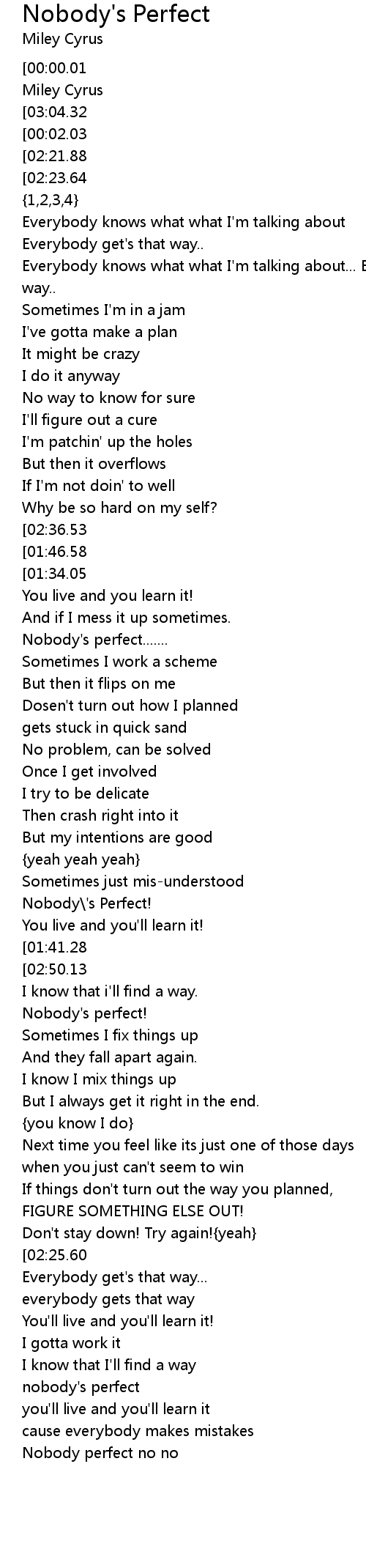 Nobody perfect no no |