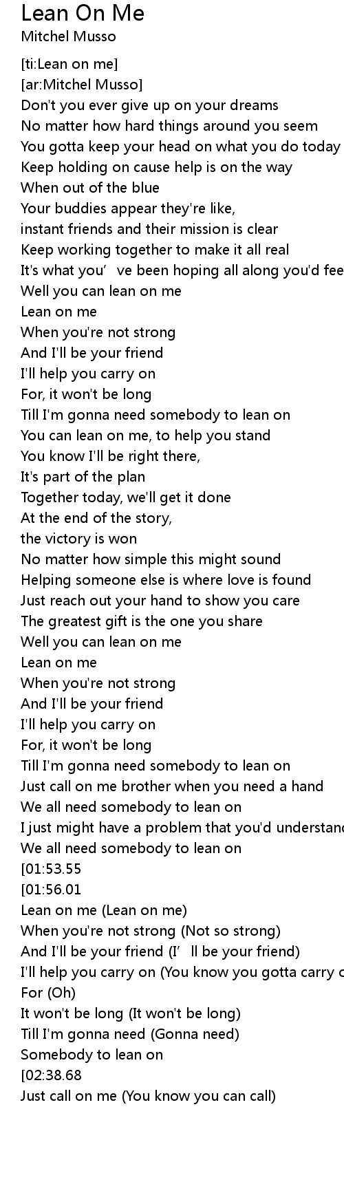 | [02:20.05] | Lean on me Lean on me |