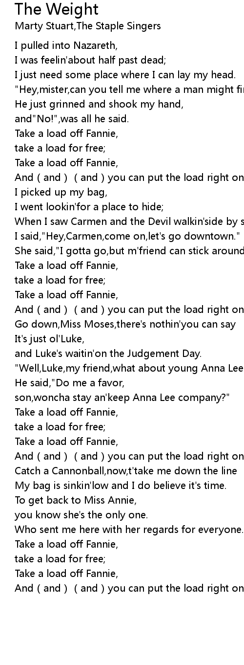 | [01:21.96] | And(and)(and)you can put the load right on me. |