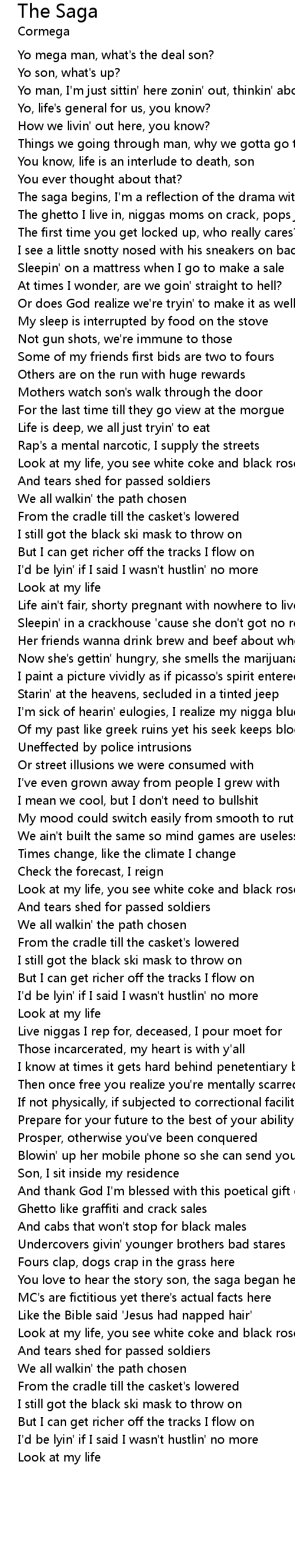 The saga begins, I'm a reflection of the drama within |