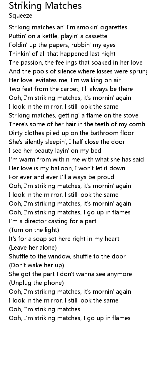 Ooh, I'm striking matches, it's mornin' again |
