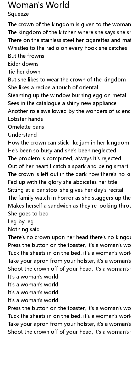Shoot the crown off of your head, it's a woman's world |