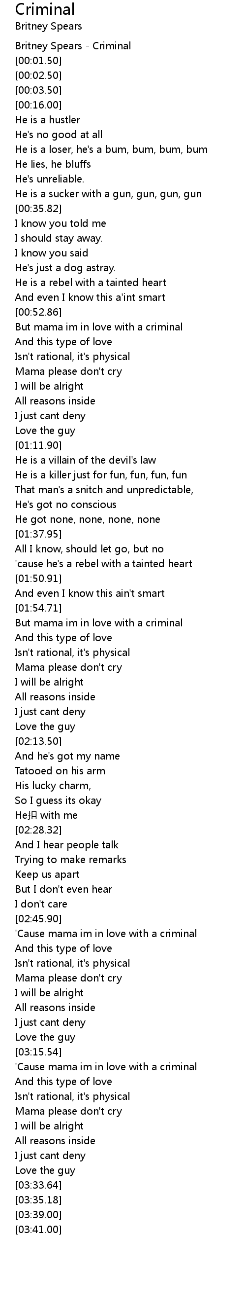 | [00:00.50] | Britney Spears Criminal |