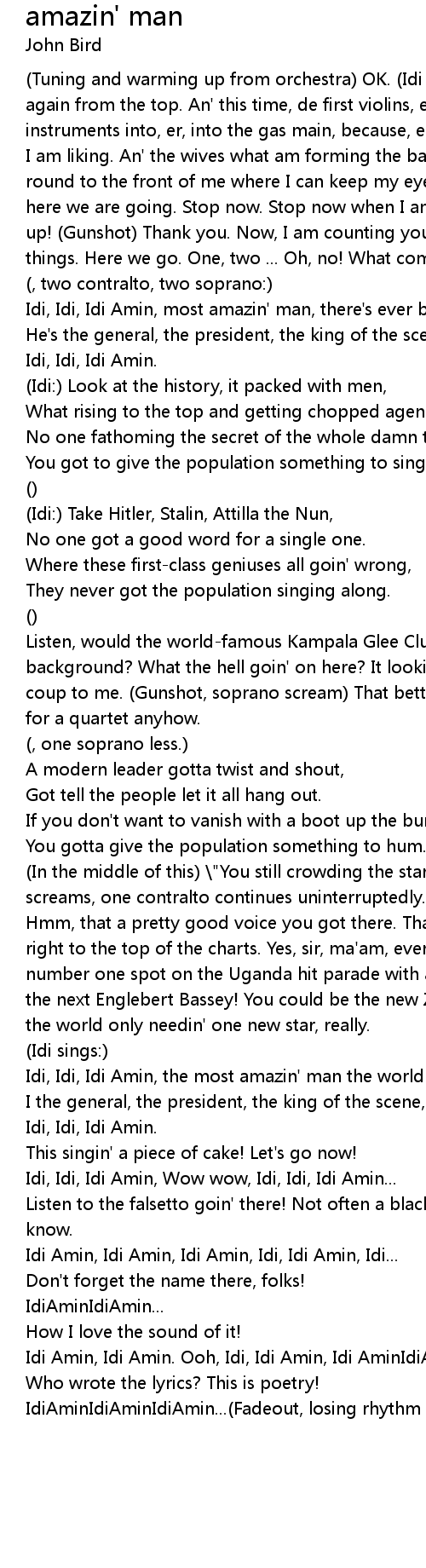 Idi, Idi, Idi Amin, most amazin' man, there's ever been. |