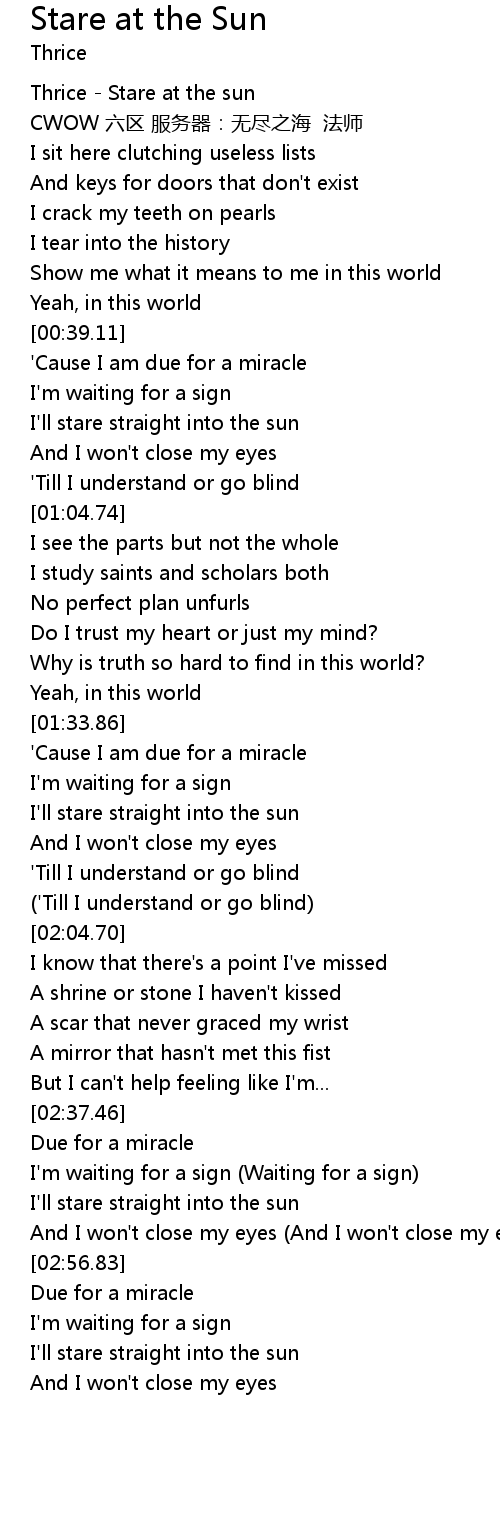 | [00:00.52] | Thrice Stare at the sun |