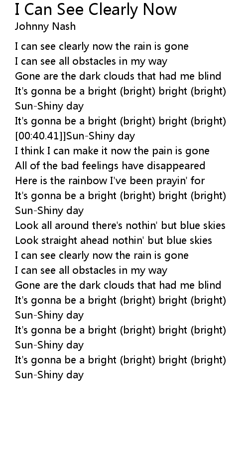 I Can See Clearly Now Lyrics
