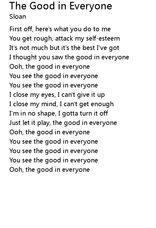 Ooh, the good in everyone |