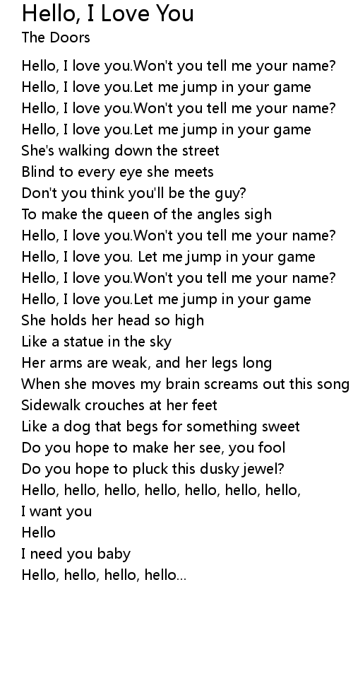 Hello, I love you.Won't you tell me your name? |