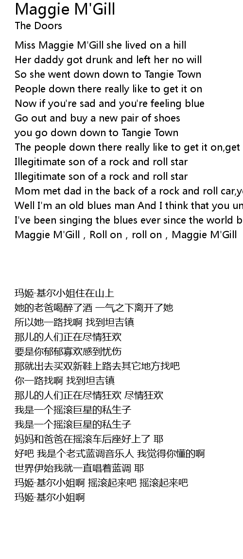 | [03:40.750] | Maggie M'Gill,Roll on,roll on,Maggie M'Gill |
