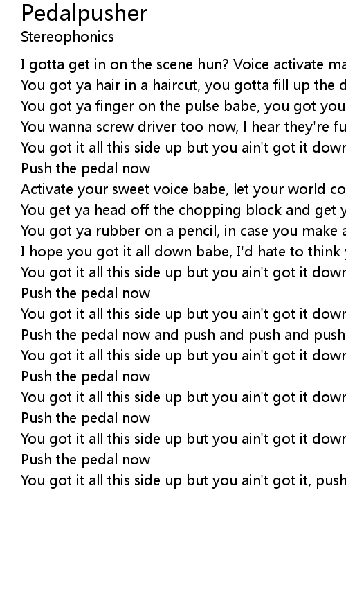 Push the pedal now and push and push and push and push |