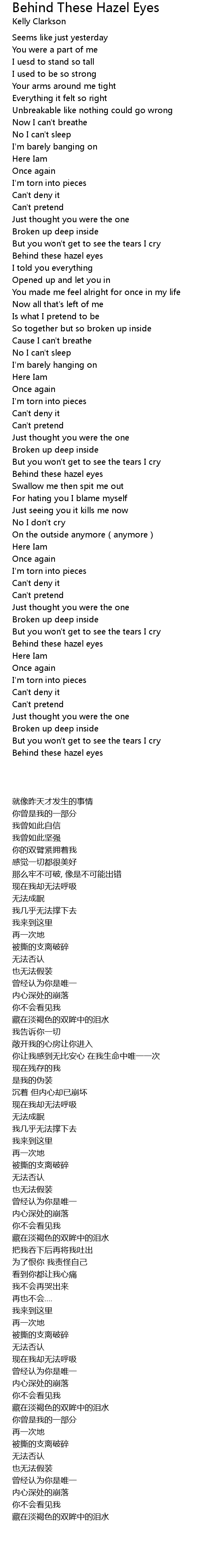 | Song | Behind These Hazel Eyes |