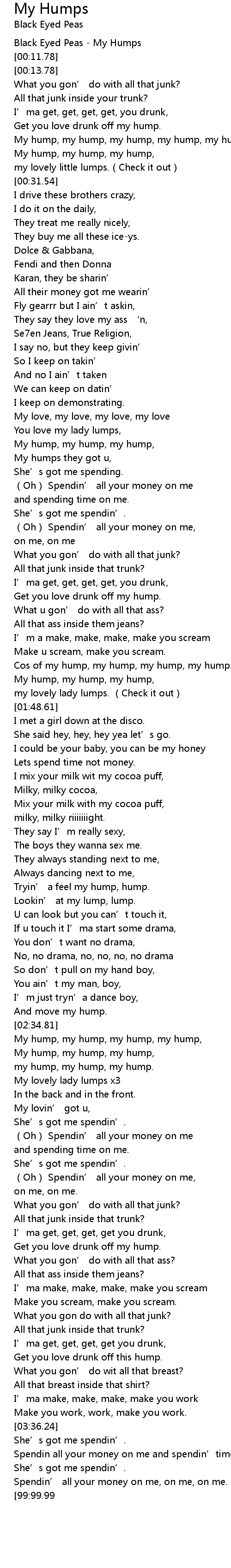 | [00:23.34] | My hump, my hump, my hump, my hump, my hump, |