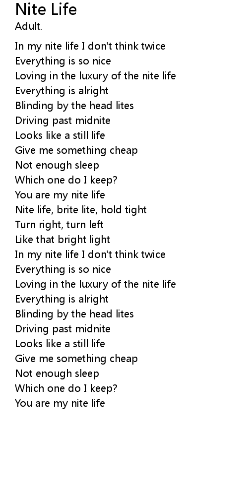 Nite life, brite lite, hold tight |