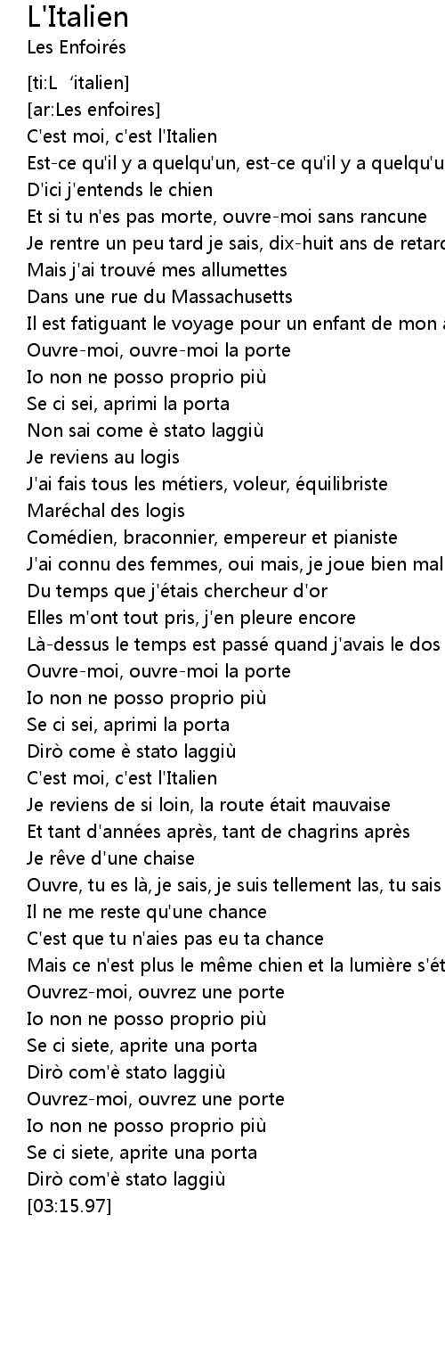 | [02:00.63] | C'est moi, c'est l'Italien |
