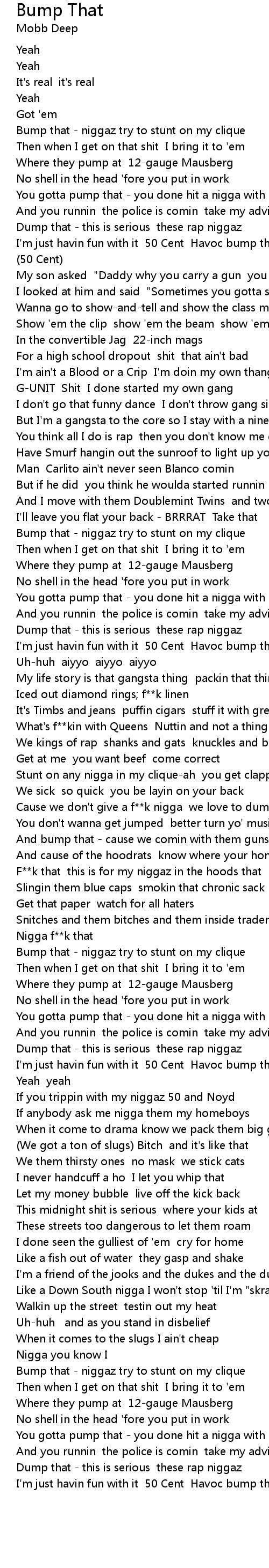 I'm just havin fun with it 50 Cent Havoc bump that |