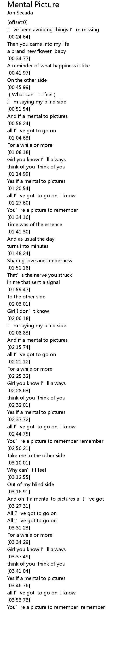 | [03:19.02] | And oh if a mental to pictures all I’ve got |