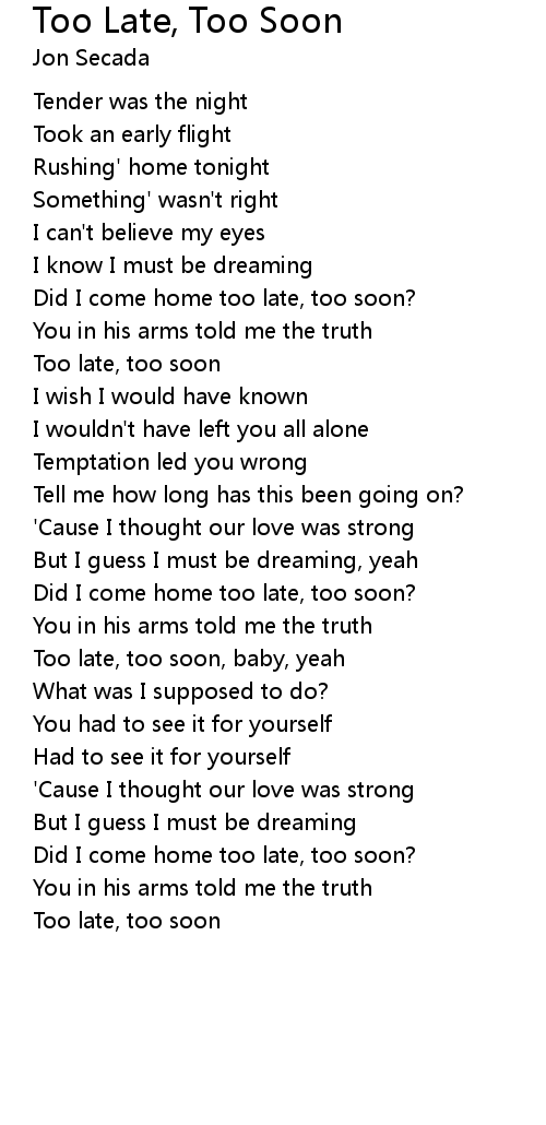 Too late, too soon, baby, yeah |