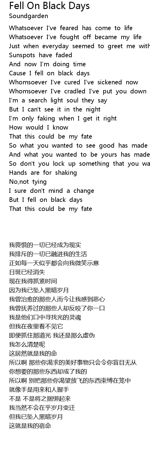 Cause I fell on black days |