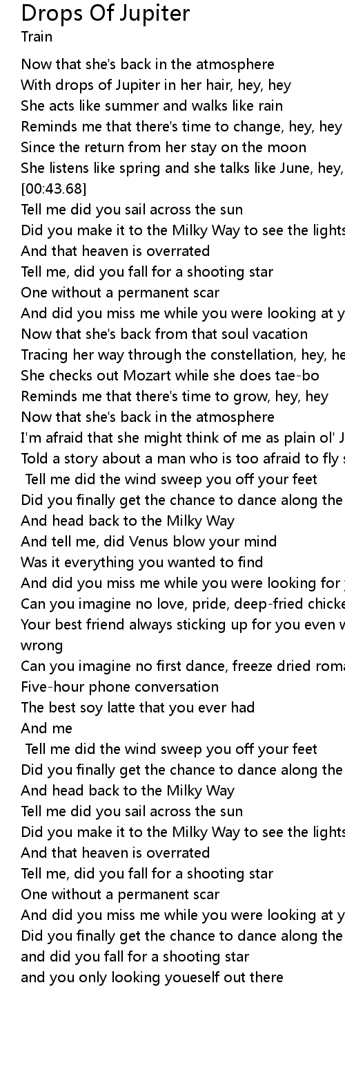 With drops of Jupiter in her hair, hey, hey |
