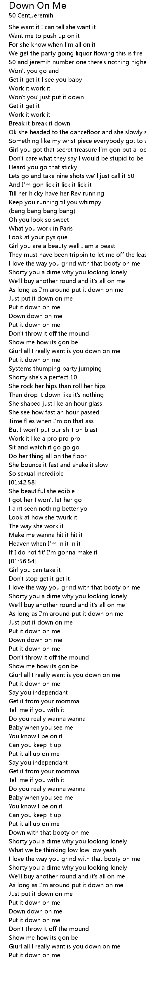 | [01:20.27] | Giurl all I really want is you down on me |