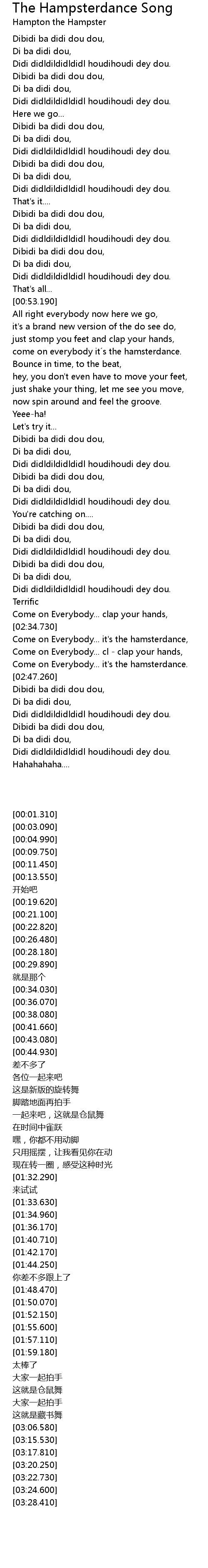 | [02:35.310] | Come on Everybody... it' s the hamsterdance, |