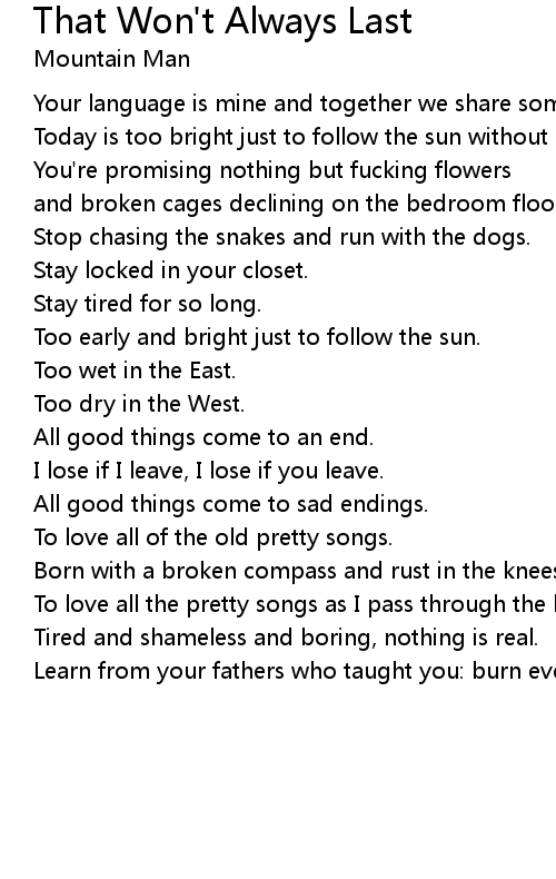 All good things come to an end. |