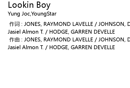 | [00:00.000] | 作词 : JONES, RAYMOND LAVELLE / JOHNSON, DIMITRY / Robinson, Jasiel Almon T. / HODGE, GARREN DEVELLE |