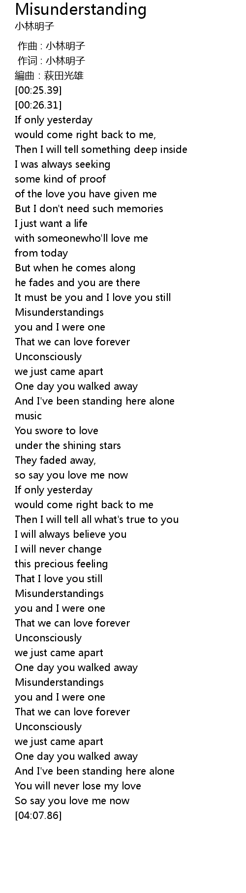 | [01:19.05] | Misunderstandings |