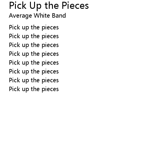 | Song | Pick Up the Pieces |