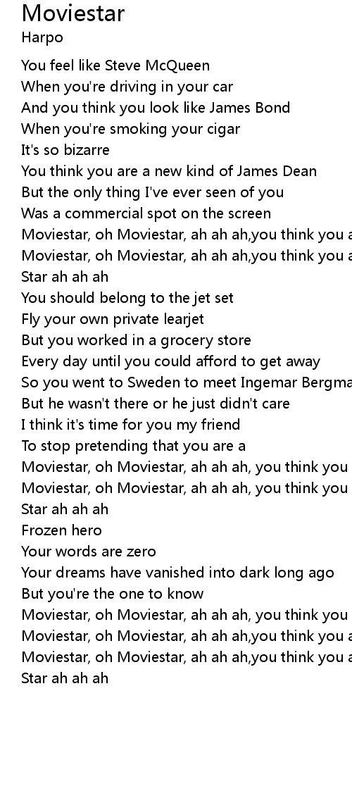 Moviestar, oh Moviestar, ah ah ah, you think you are a Movie |