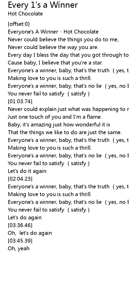 | [00:00.50] | Everyone's A Winner - Hot Chocolate |