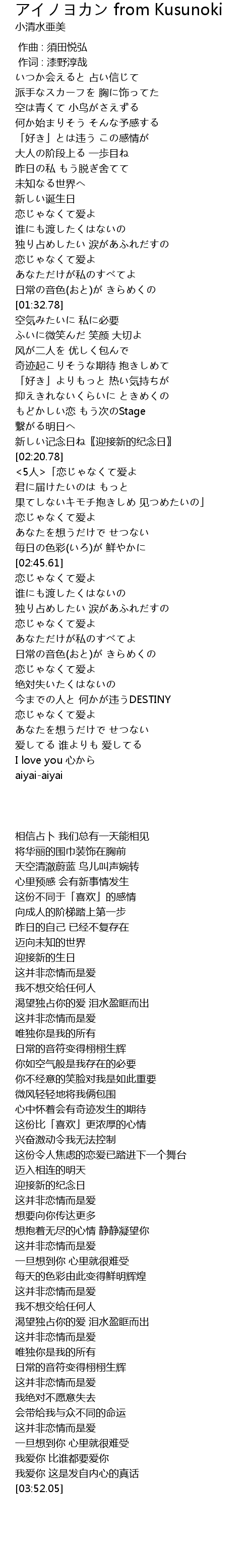 | [02:21.54] | <5人>「恋じゃなくて爱よ |