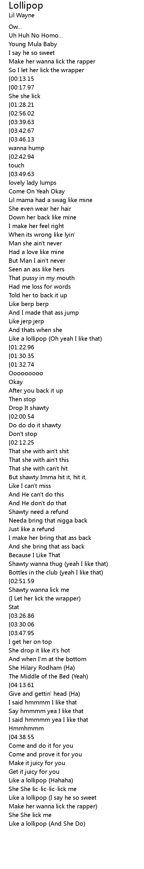 | [04:45.08][02:51.59][02:47.70] | Shawty wanna lic-lic-lic-lick me |