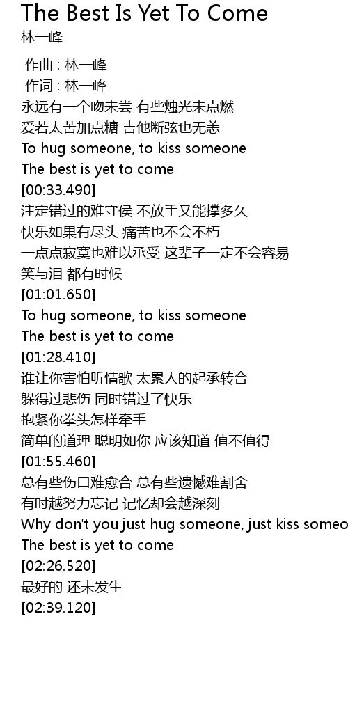 | [02:20.800] | The best is yet to come |