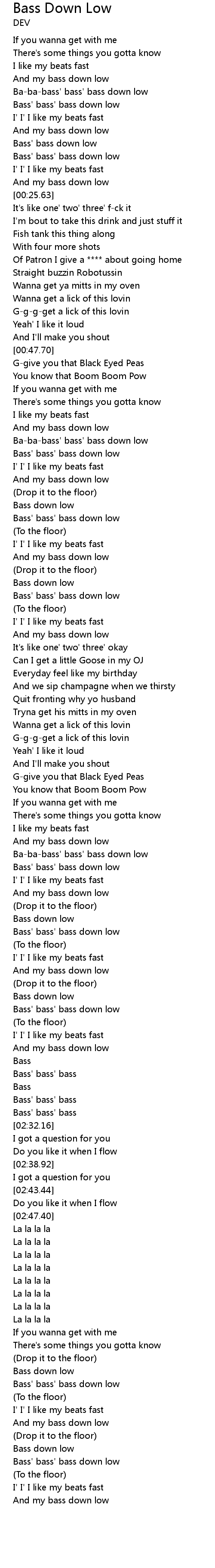 Ba-ba-bass' bass' bass down low |
