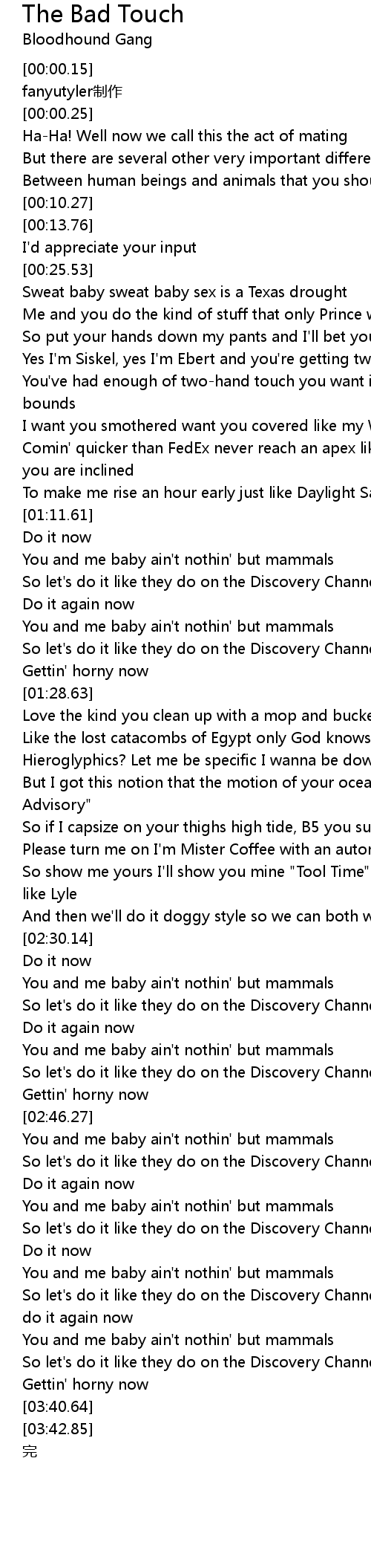 | [02:38.49] | You and me baby ain't nothin' but mammals |