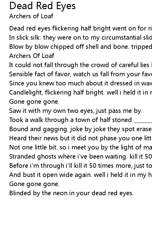 Dead red eyes flickering half bright went on for ride (?) |