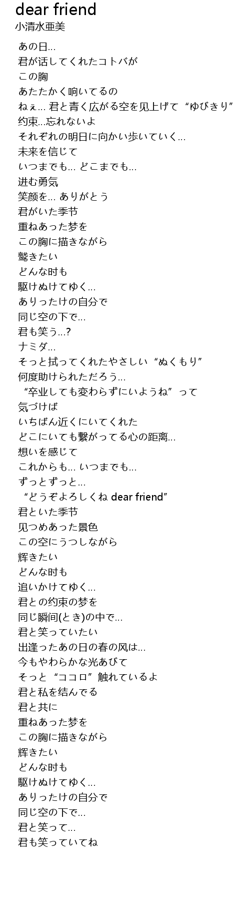 | [02:34.52] | “どうぞよろしくね dear friend” |