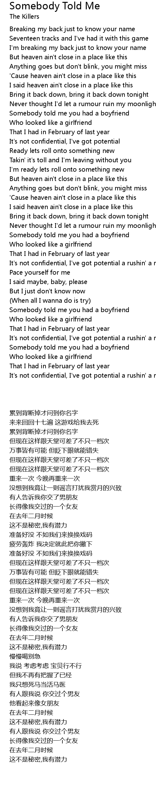 Somebody told me you had a boyfriend |