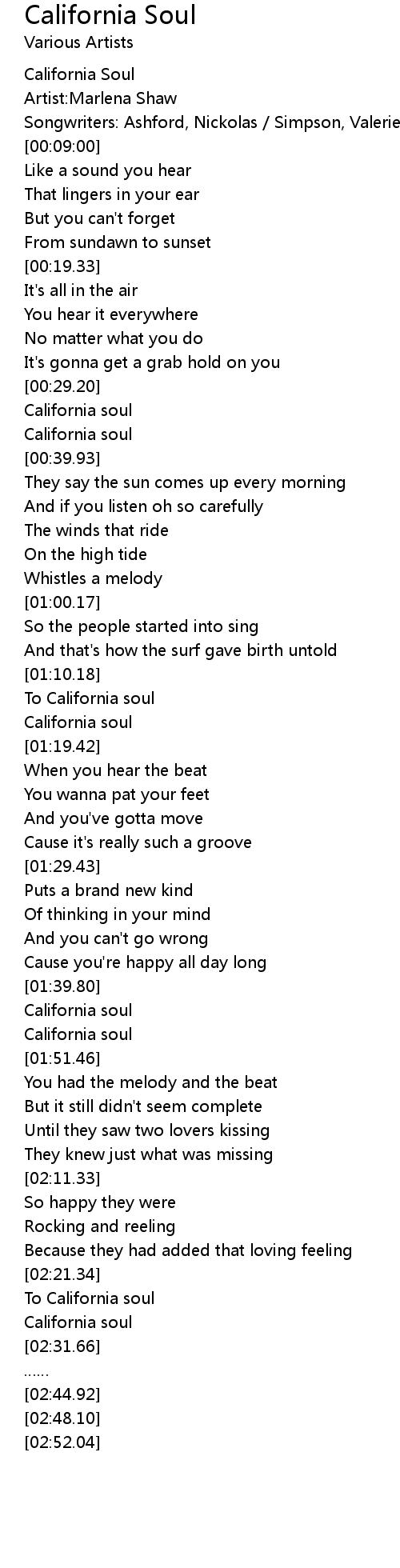| [02:27.09] | California soul |