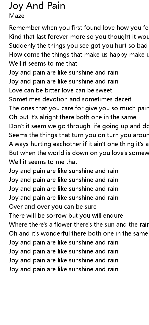 Joy and pain are like sunshine and rain |